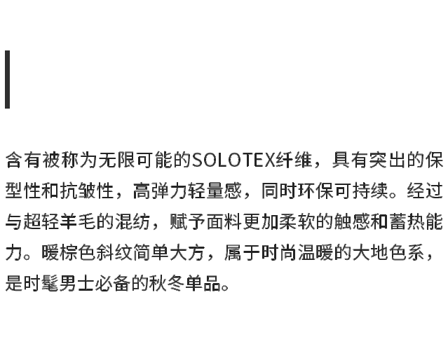 人的成长是一个不断做加法的过程,每个人在社会中都承担着多重角色。生命很重,但生活要轻,我们期望打破男性穿衣的“身份枷锁”,为自己做减法,以更从容的姿态融入角色。报喜鸟20AW轻正装系列,突破轻量界限,升级面料工艺,自由切换商务、休闲、宴会,从心感受“轻”的力量。